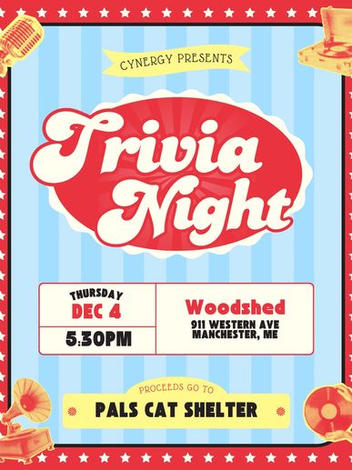 Join us at The Woodshed on December 4th for Trivia Night, presented by KV Chamber's professional group Cynergy. All proceeds from Trivia night go to benefit PALS Cat Shelter. No pre=registration required.
